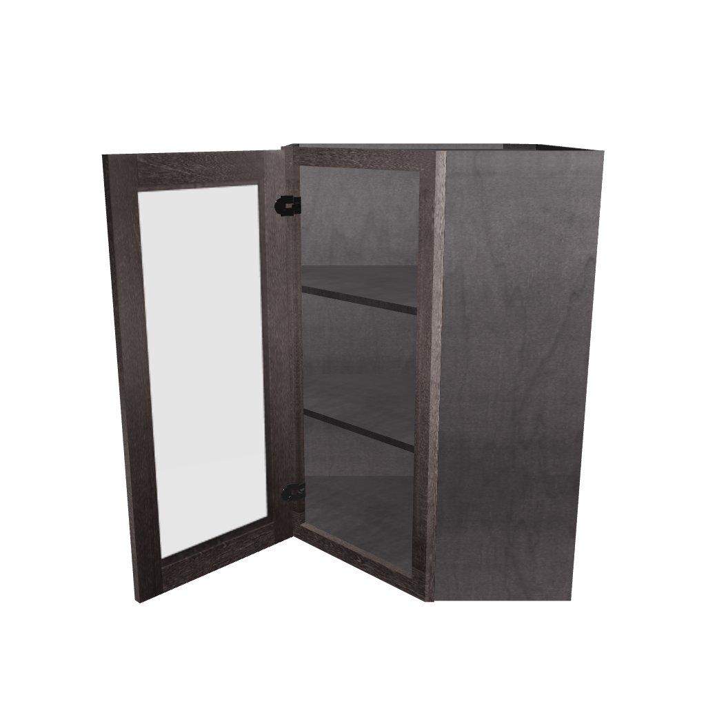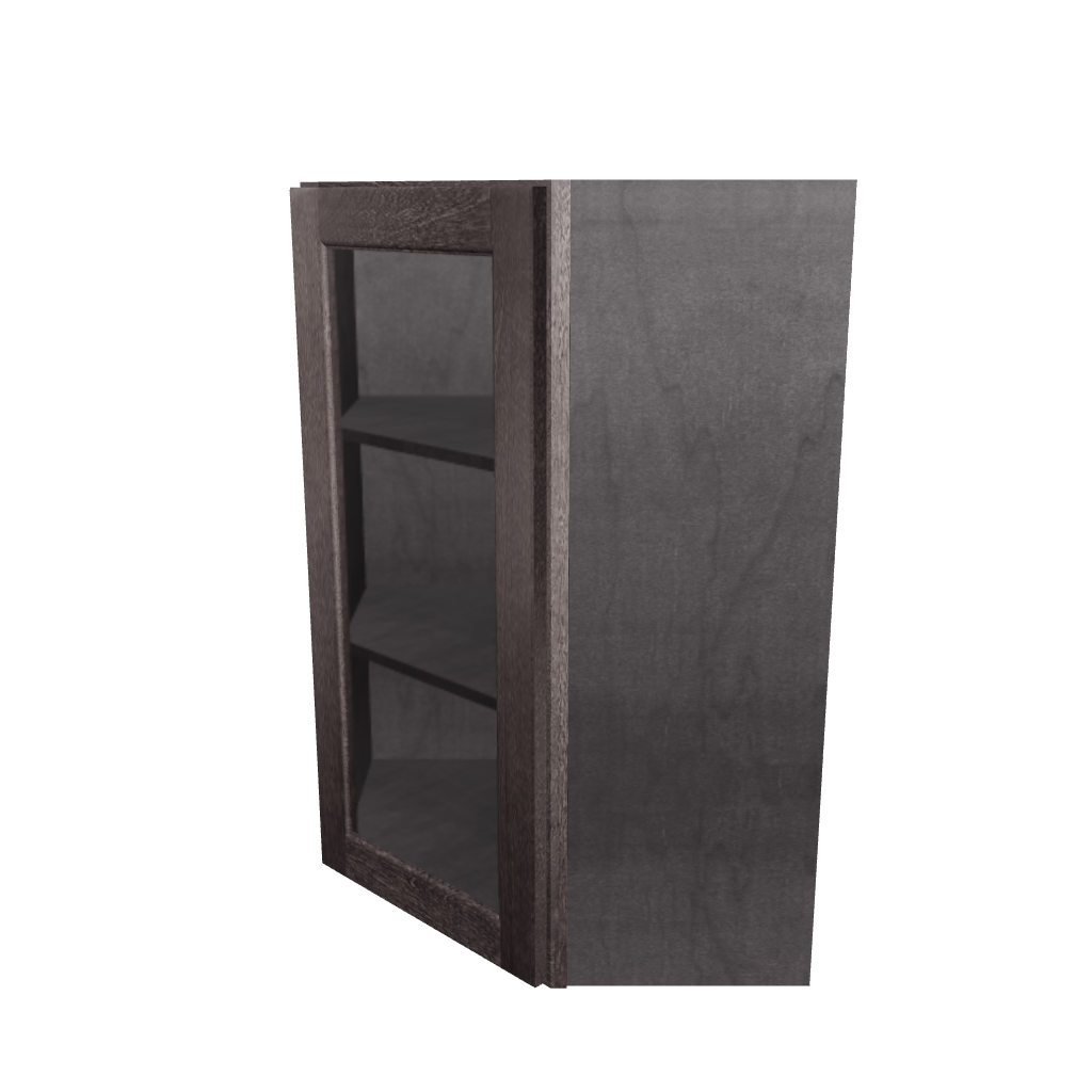 Frosted Glass Door Diagonal Corner Wall Kitchen Cabinet DCMD2436 Milan Slate 24 in. width 36 in. height 12 in. depth