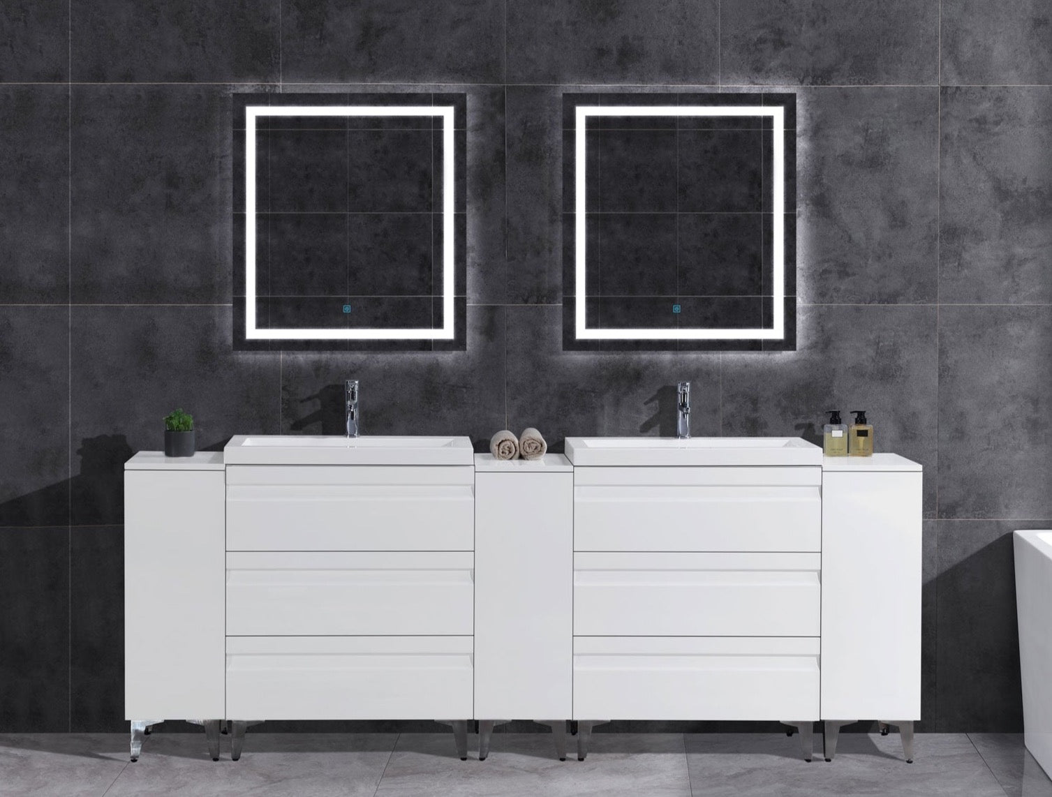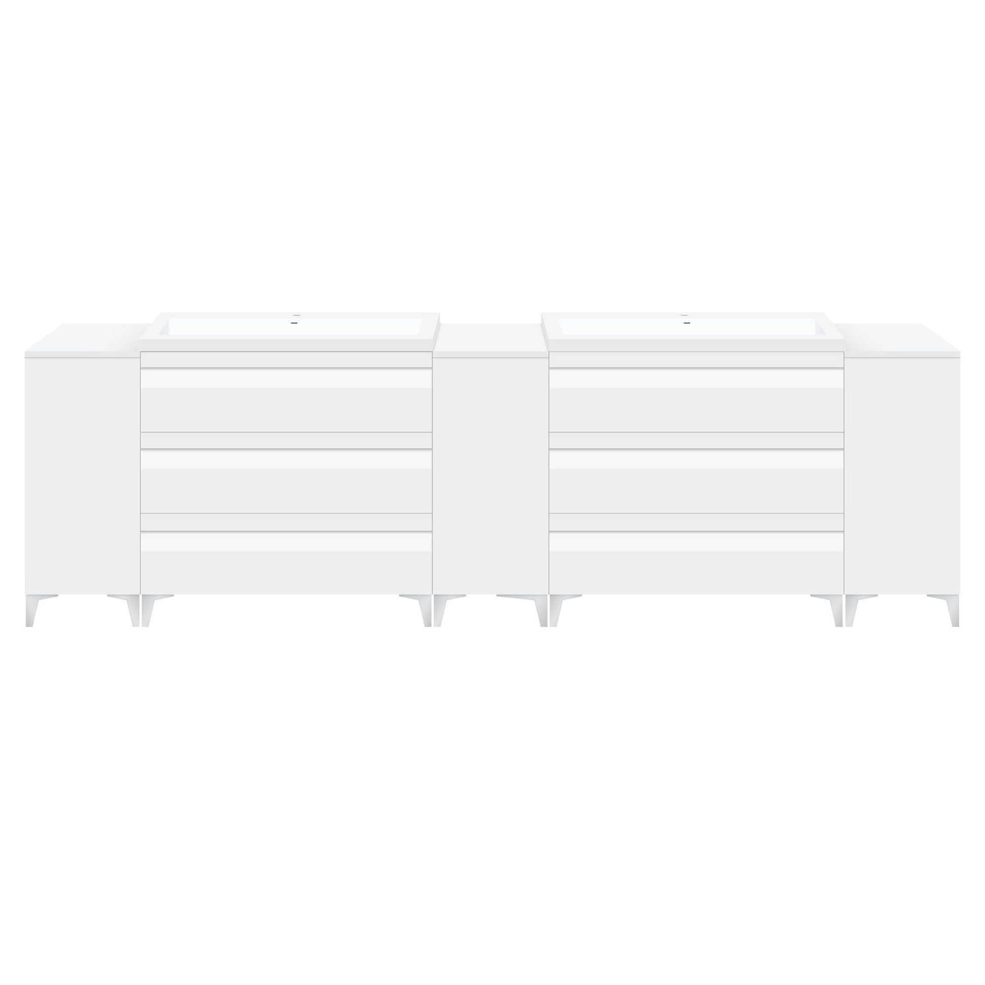 96" W Freestanding White Vanity Set with Two Sinks (LV8-C20B-96W) Style 8